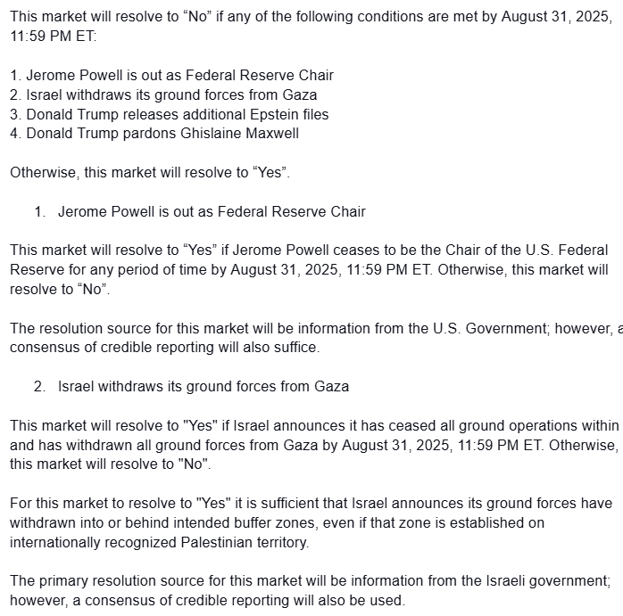 This market will resolve to “No” if any of the following conditions are met by August 31, 2025, 11:59 PM ET: