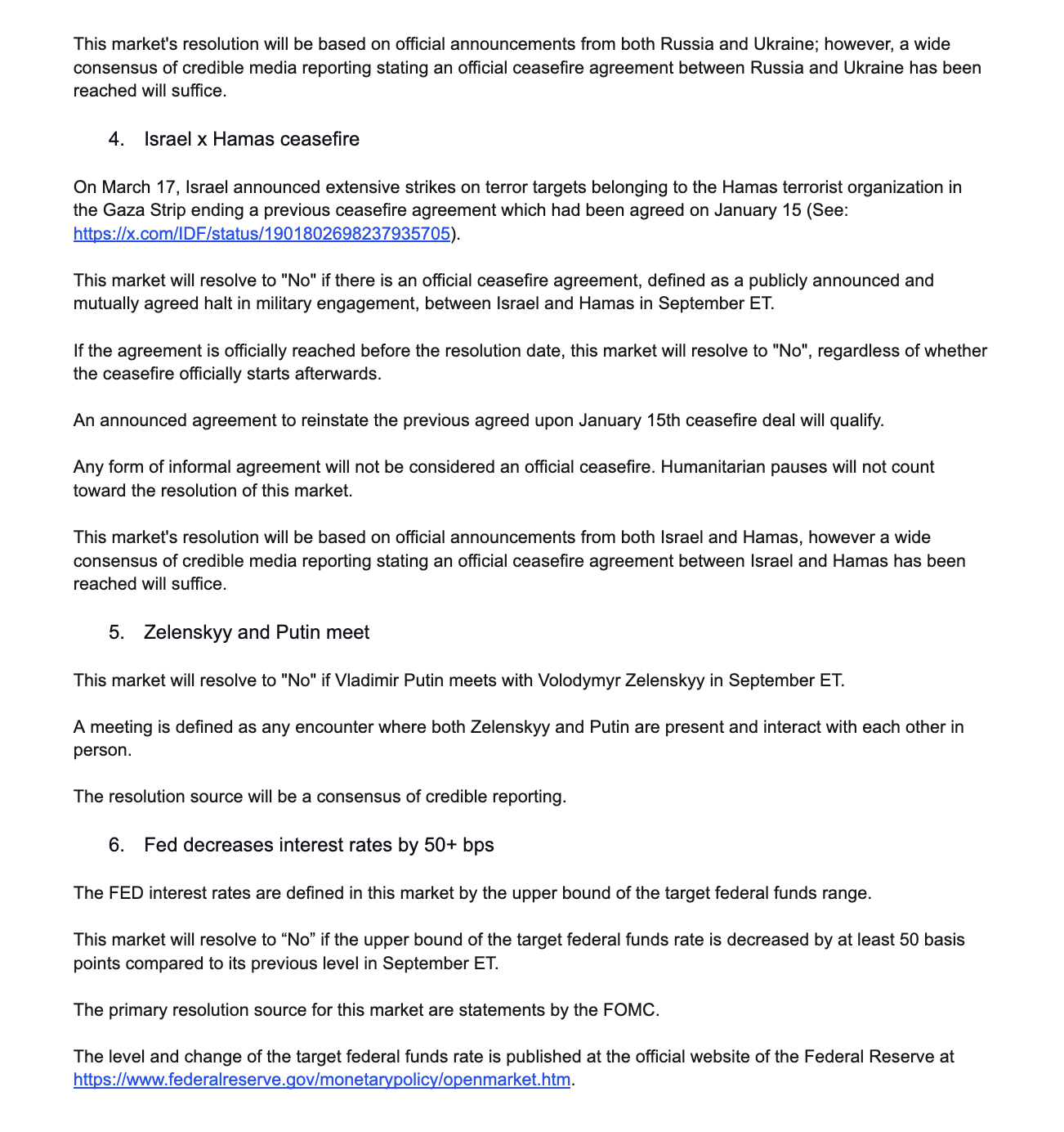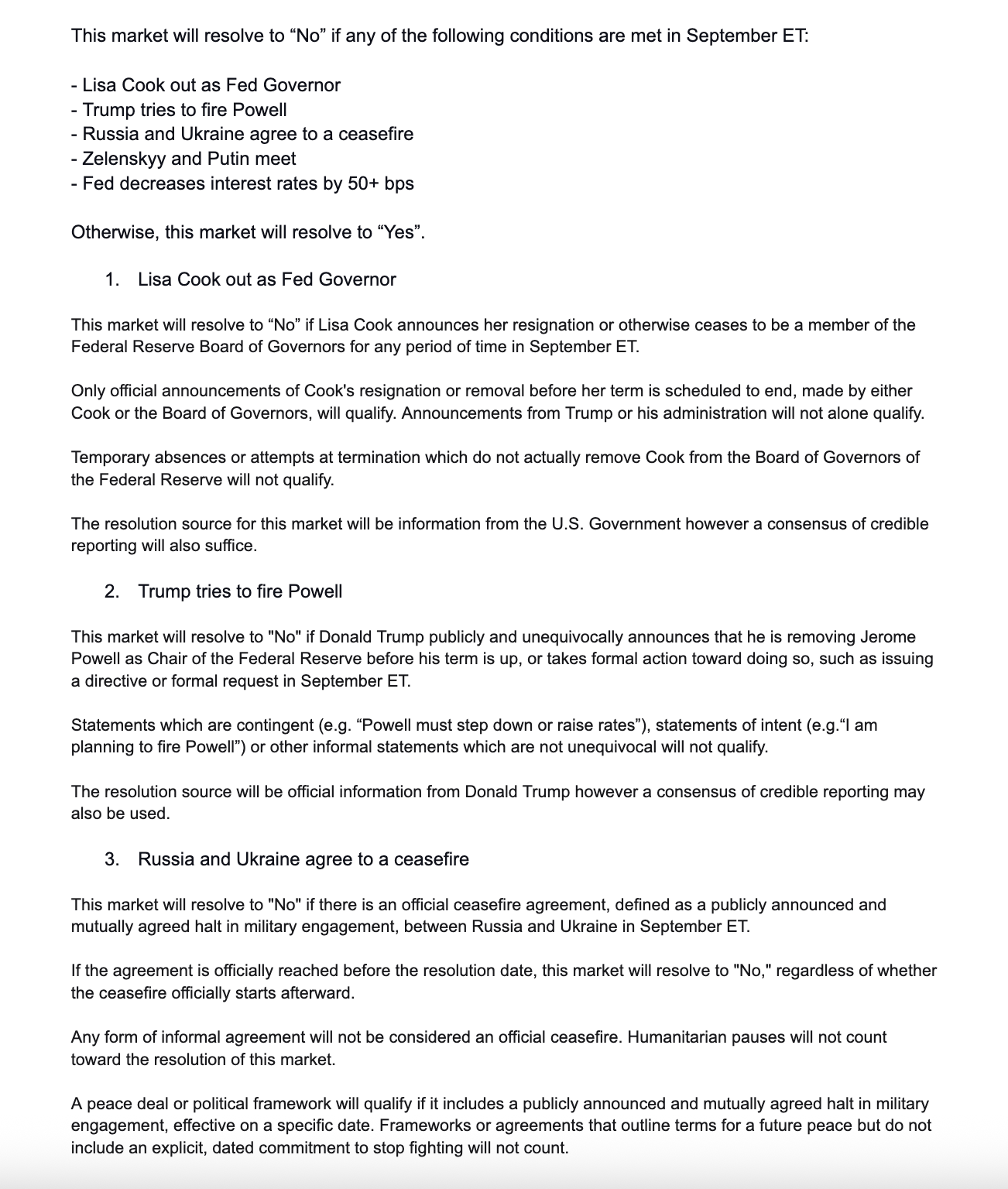 This market will resolve to “No” if any of the following conditions are met during September, 2025 ET: